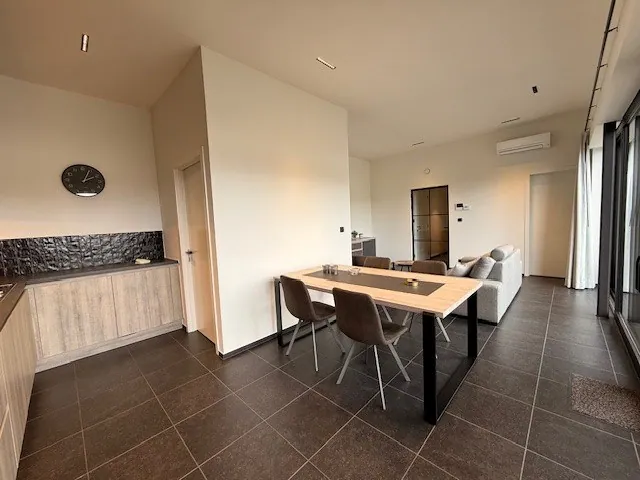 Het appartement is modern afgewerkt en wordt volledig bemeubeld verhuurd. Bij het betreden van het appartement komt u in de inkomhal met gastentoilet en praktische vestiairekast. De lichtrijke leefruimte met open keuken vormt het hart van de woning en biedt een aangename woonbeleving. Aansluitend bevindt zich een berging met aansluiting voor wasmachine en droogkast.