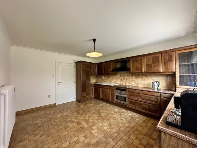 De woning beschikt over een inkomhal met gastentoilet, een lichtrijke leefruimte en een ingerichte keuken met kookplaat, oven en afzuigkap. Vanuit de keuken heb je toegang tot de tuin, waar het aangenaam vertoeven is.