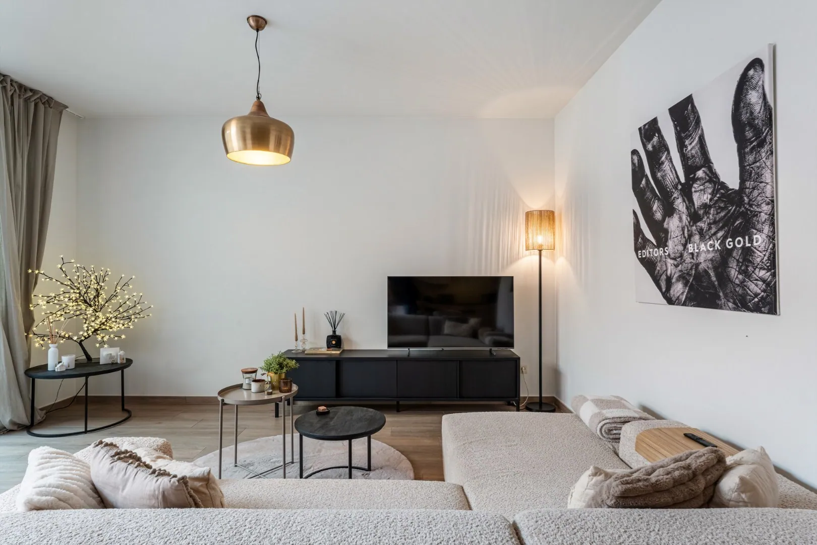 Het gehele appartement is voorzien van dezelfde keramische tegel in parketlook.