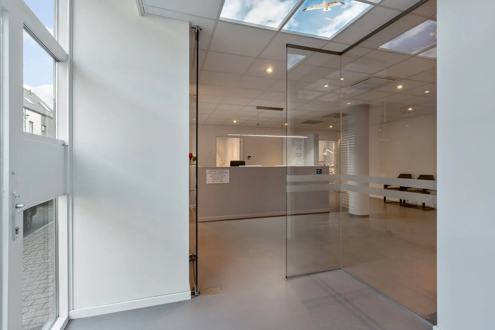 De ligging van het kantoor is ideaal, met goede bereikbaarheid en publieke parkeergelegenheid.