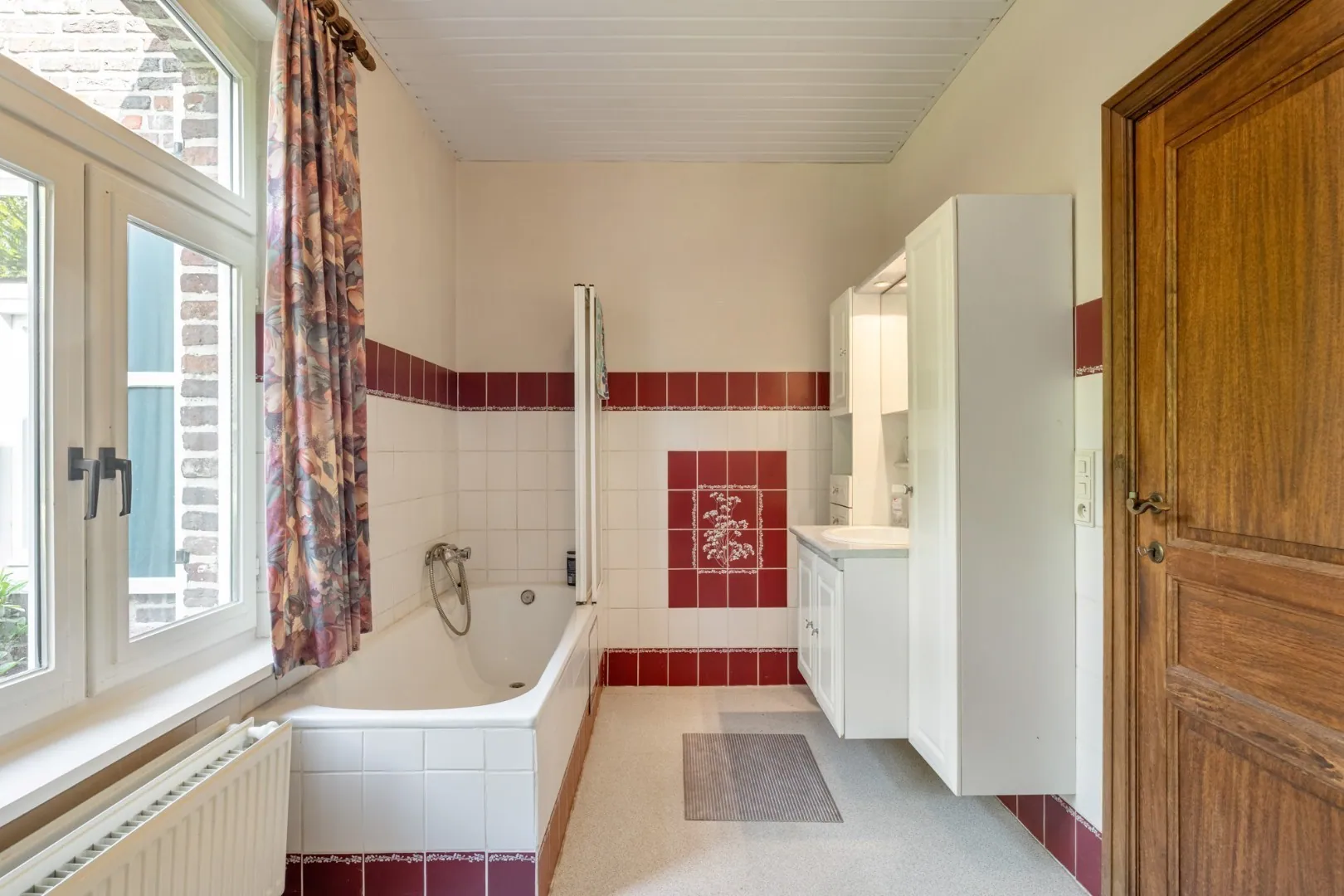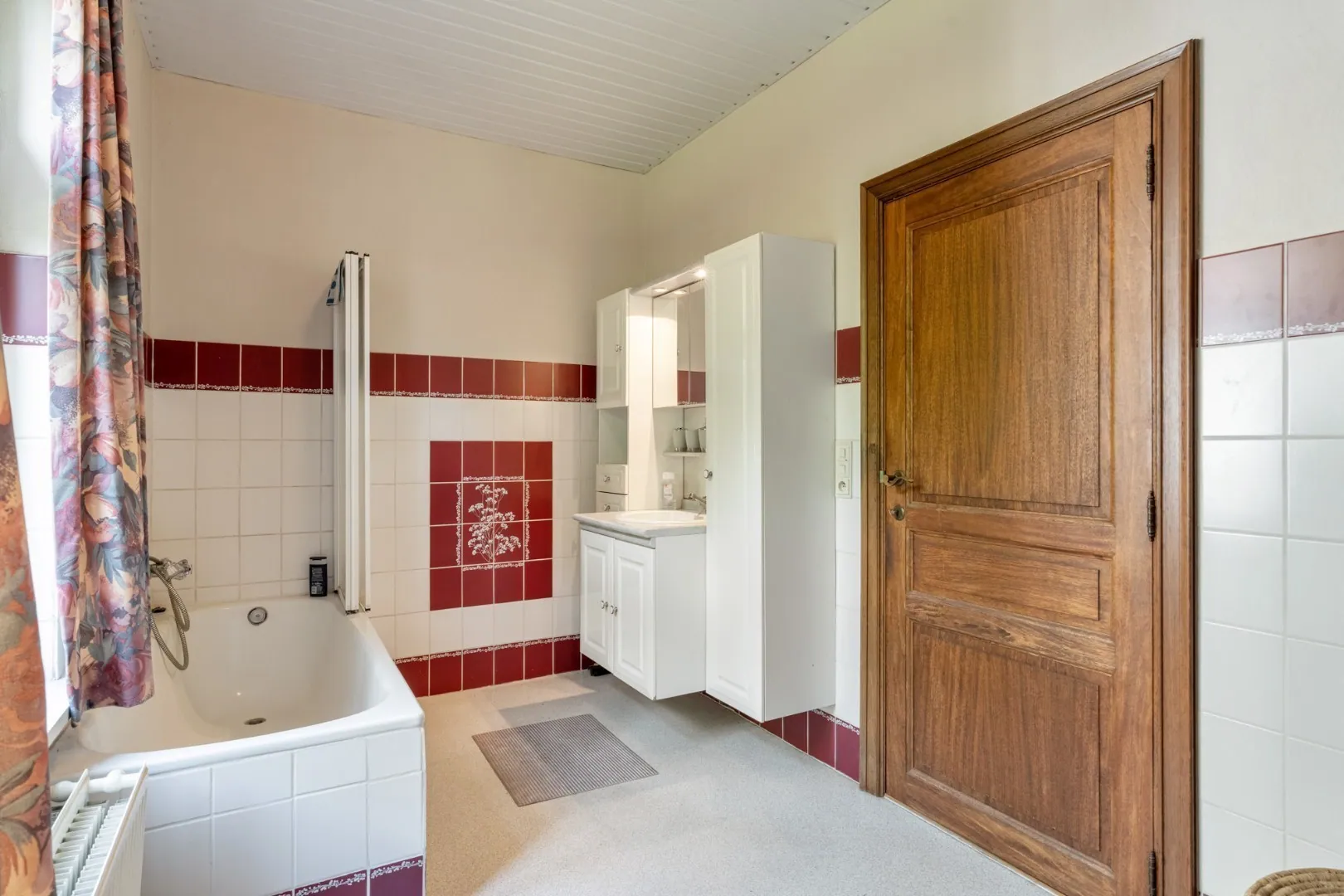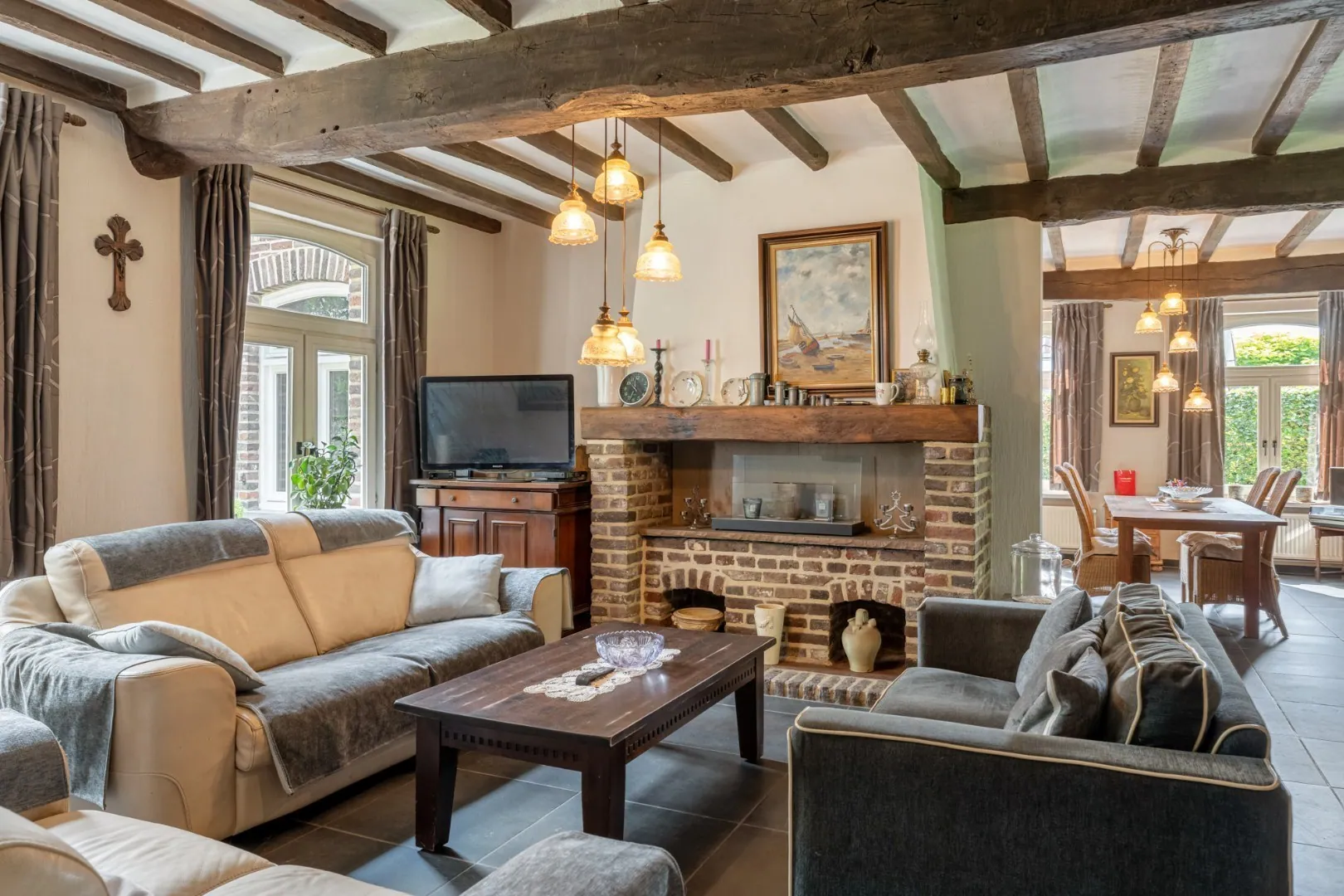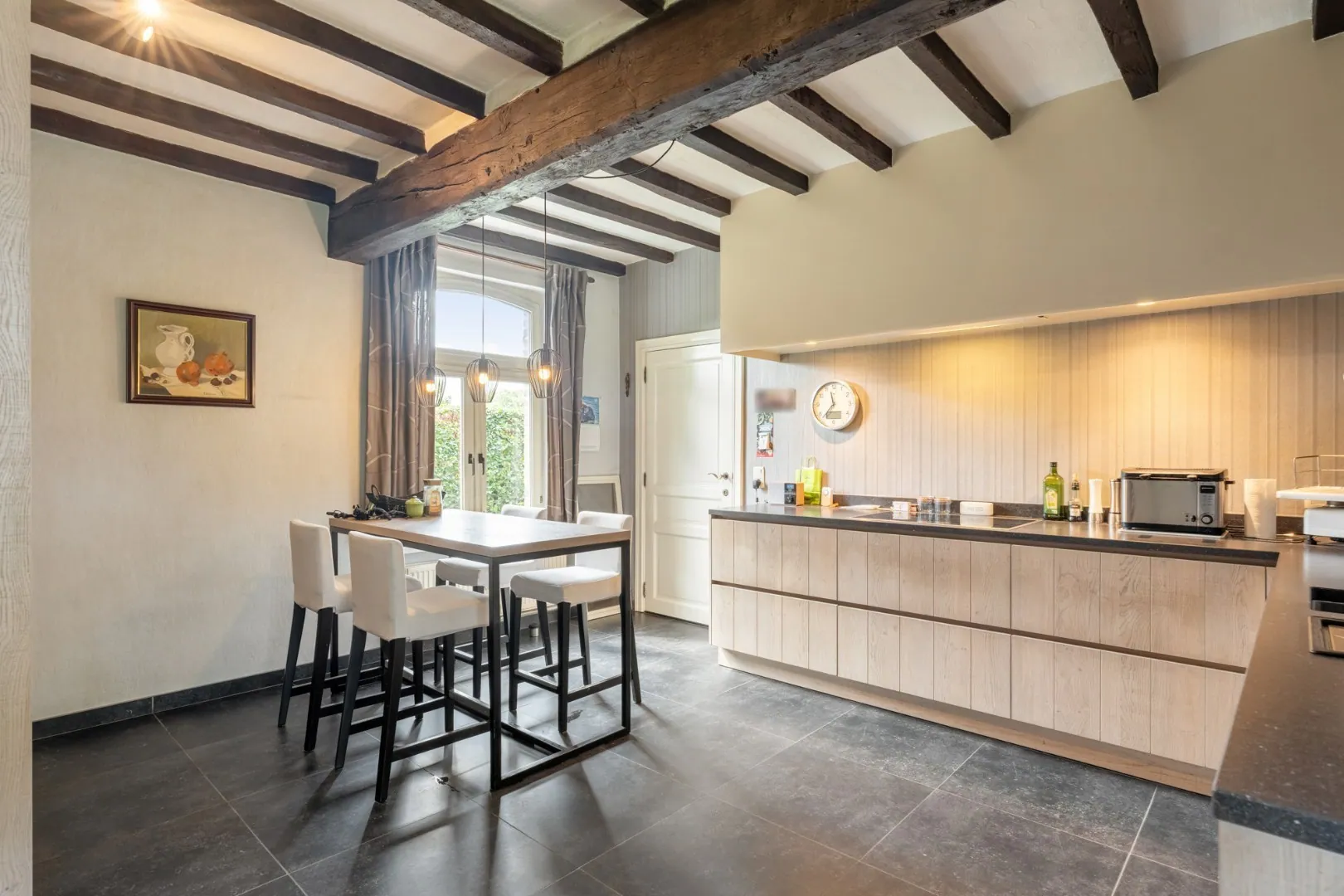 Dit ruime landhuis in een klassieke bouwstijl ademt karakter. De ligging combineert wonen vlakbij de dorpskern met de rust van een parkachtige tuin. De woning werd gebouwd in 1985 met zeer degelijke materialen, de raampartijen tot op vloerniveau in de woonkamer trekken de tuin als het ware naar binnen.