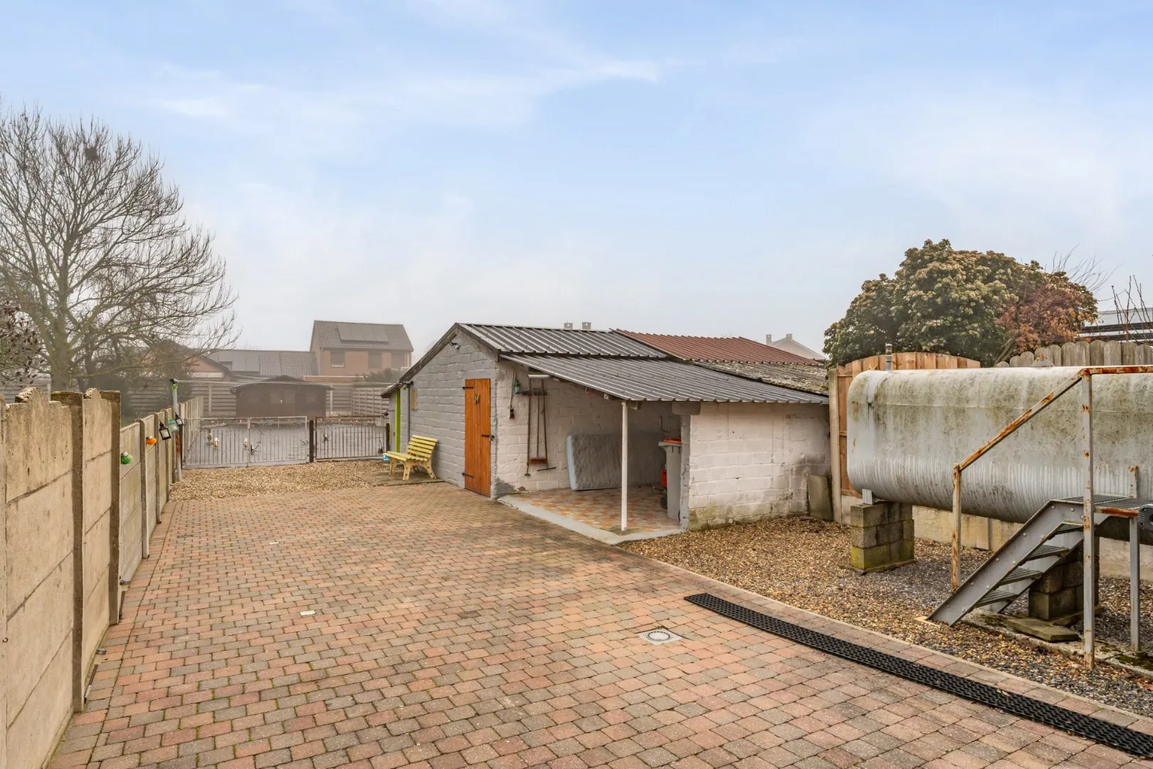 In de diepe achtertuin vinden we een groot houten tuinhuis en een gemetseld bijgebouwtje. De tuin is volledig omheind en onderhoudsvriendelijk aangelegd.