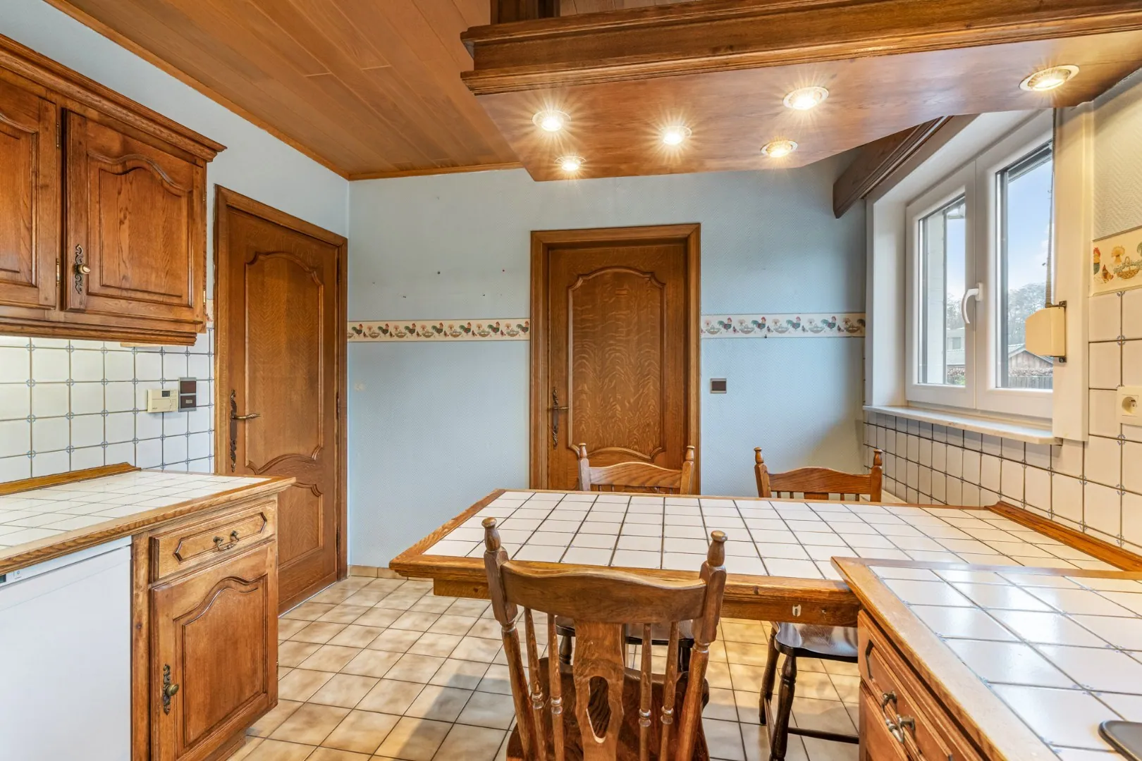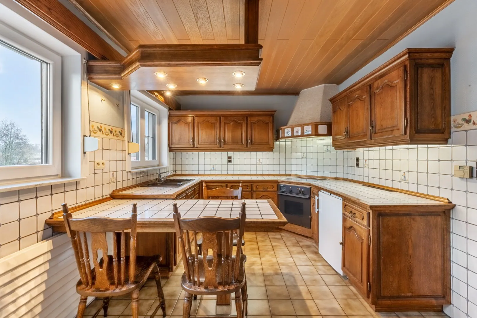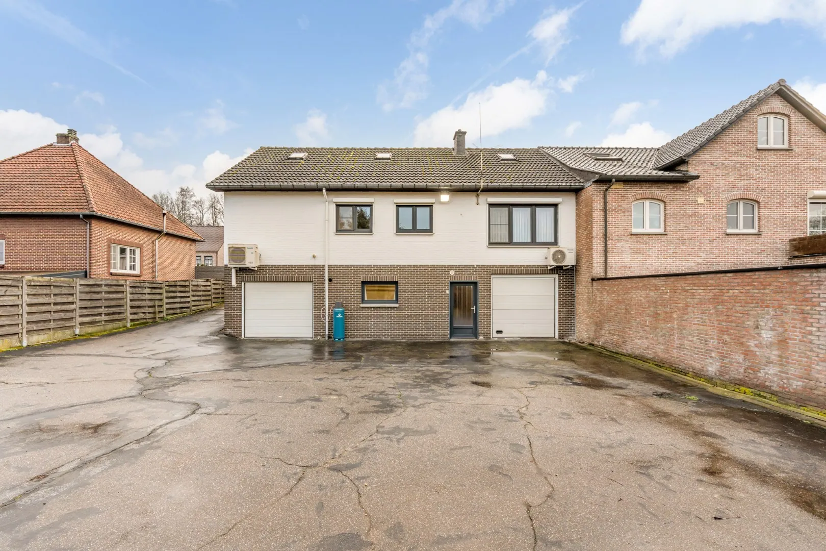 De woning is volledig onderkelderd : 2 x garage met sectionale poort, voorraadkelder en een 2de compleet geinstalleerde keuken.