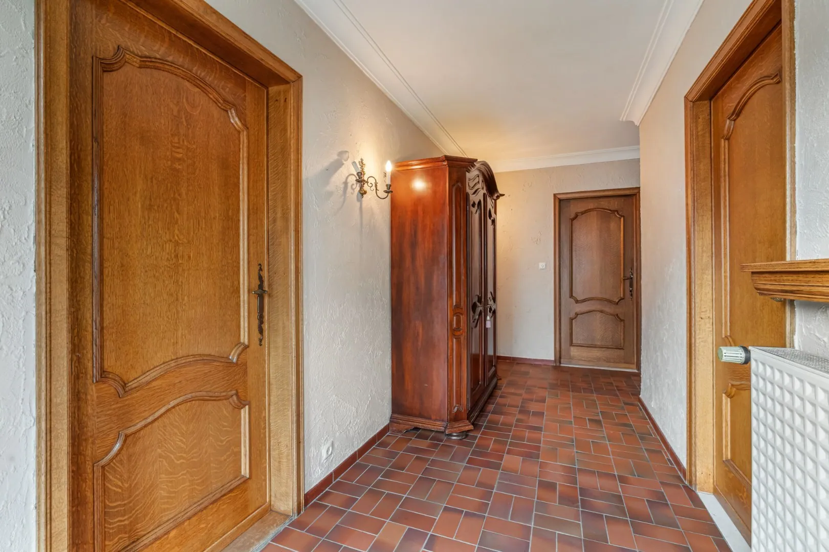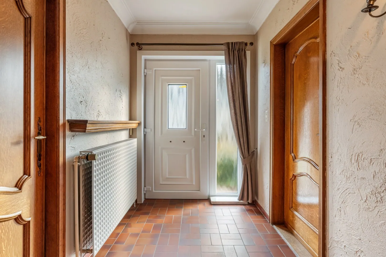 Via de voordeur bereiken we de inkomhal, deze is voorzien van een tegelvloer.